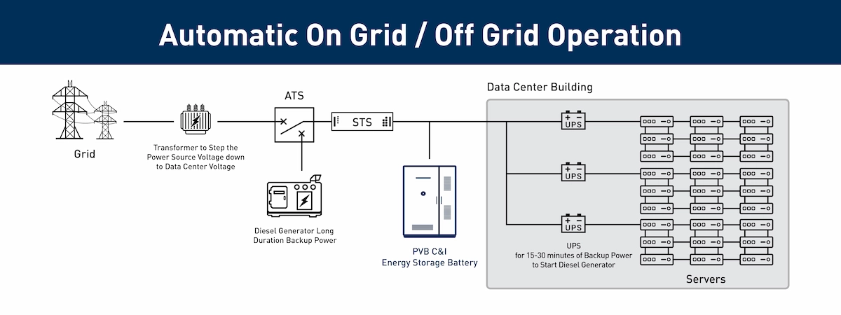 Energy storage systems respond to grid disturbances within milliseconds, ensuring uninterrupted power for critical IT loads. They work alongside UPS systems to enhance overall power resilience and availability.