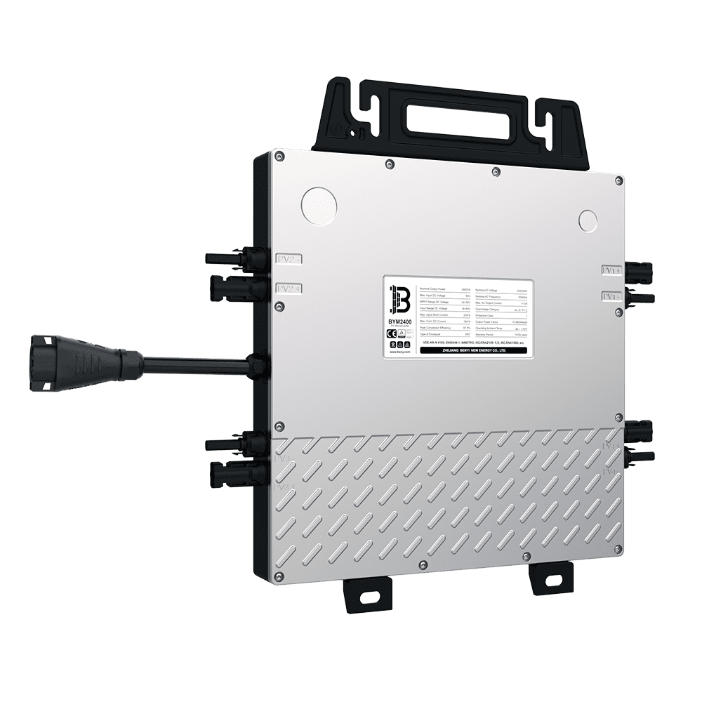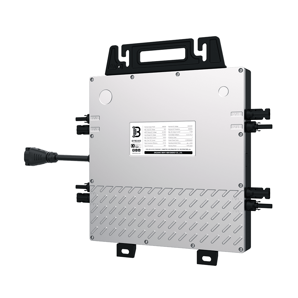 With the maximum output power of 2400VA, PVB BYM2400 microinverters connect to 4 modules and enable modulelevel maintenance and management of the PV station by monitoring power generation of each module.